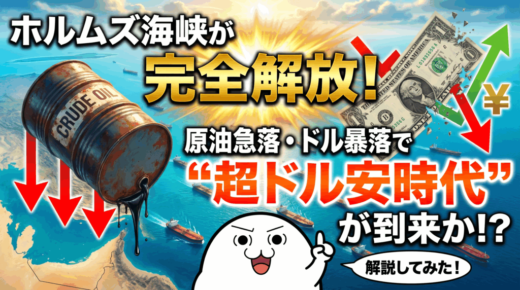 ホルムズ海峡が完全解放!原油急落・ドル暴落で「超ドル安時代」が到来か!?チャンスなのか!?解説してみた!