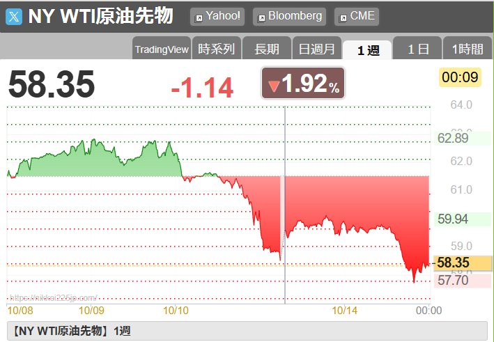 米中対立で「世界の景気が冷える→原油の需要が落ちる」懸念が強まり、さらにIEA(国際エネルギー機関)の“供給過剰”見通しも重なって、5カ月ぶり安値圏まで下落しています。