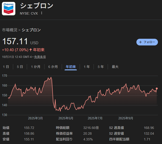 シェブロンは世界的なエネルギー供給の要であり、多少の景気変動があっても安定した収益を維持します。