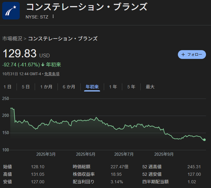 特にコンステレーション・ブランズとレナーは年初来で下落傾向にありました。